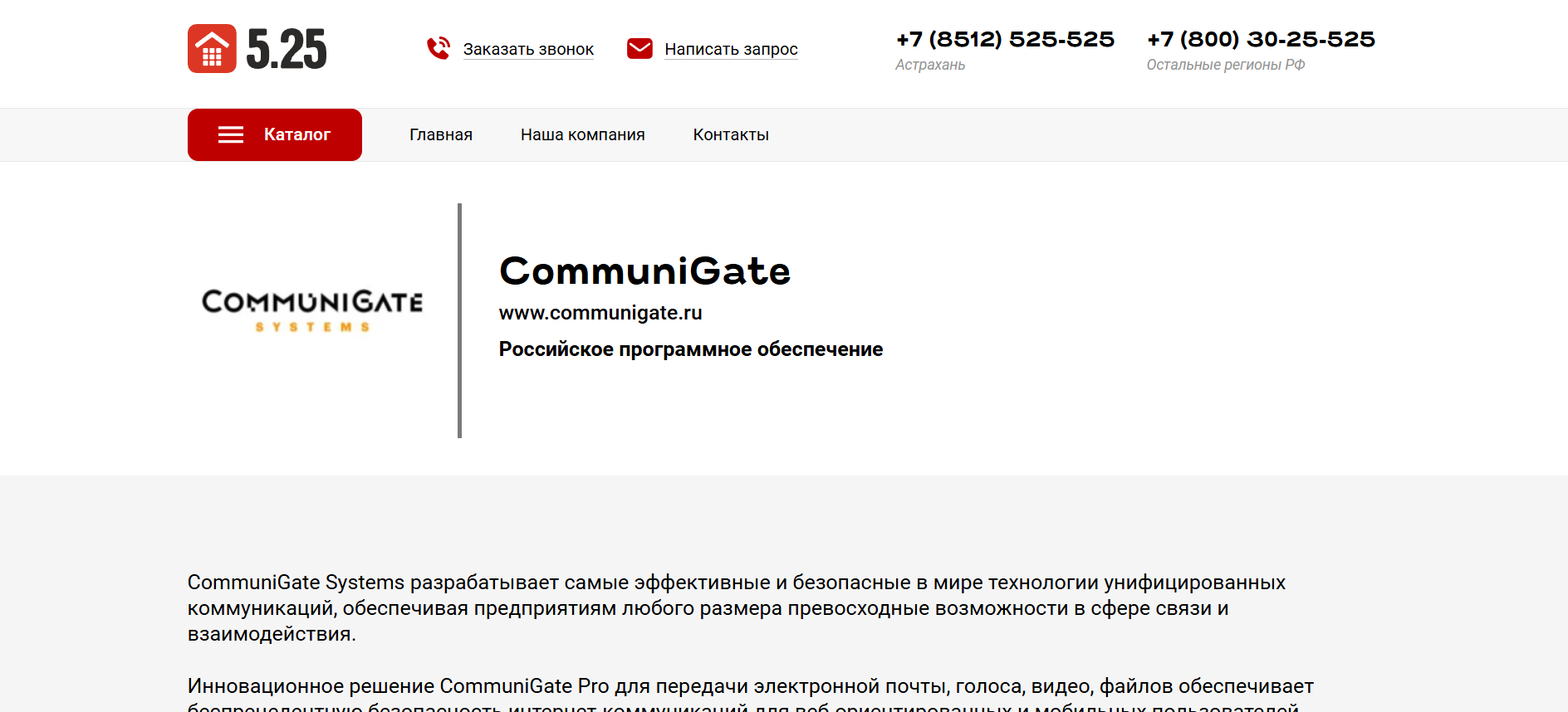 Инновационное решение CommuniGate Pro для передачи электронной почты, голоса, видео, файлов обеспечивает беспрецедентную безопасность интернет-коммуникаций для веб-ориентированных и мобильных пользователей. Уникальная многопоточная технология установила целый ряд мировых рекордов и отличается высочайшей производительностью, представляя собой наилучшее вложение средств для организаций, которые серьезно относятся к безопасности и эффективности своей деятельности.