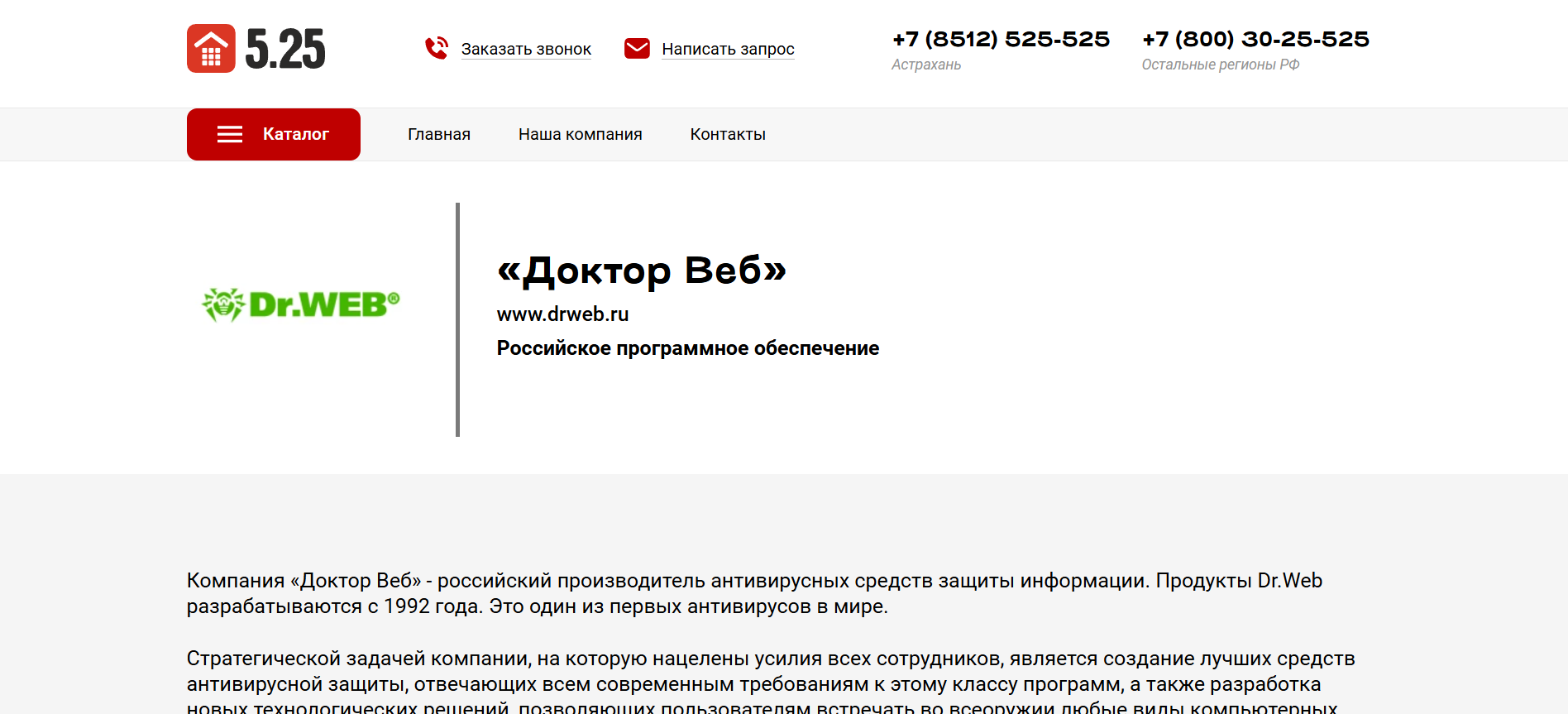 Компания «Доктор Веб» - российский производитель антивирусных средств защиты информации. Продукты Dr.Web разрабатываются с 1992 года. Это один из первых антивирусов в мире.