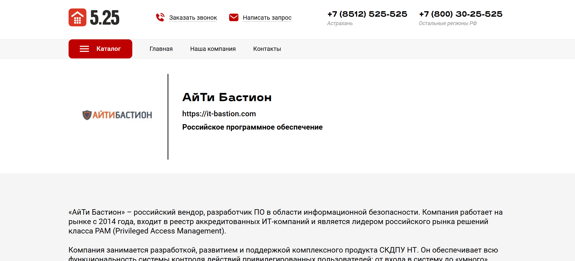 «АйТи Бастион» – российский вендор, разработчик ПО в области информационной безопасности. Компания работает на рынке с 2014 года, входит в реестр аккредитованных ИТ-компаний и является лидером российского рынка решений класса PAM (Privileged Access Management).