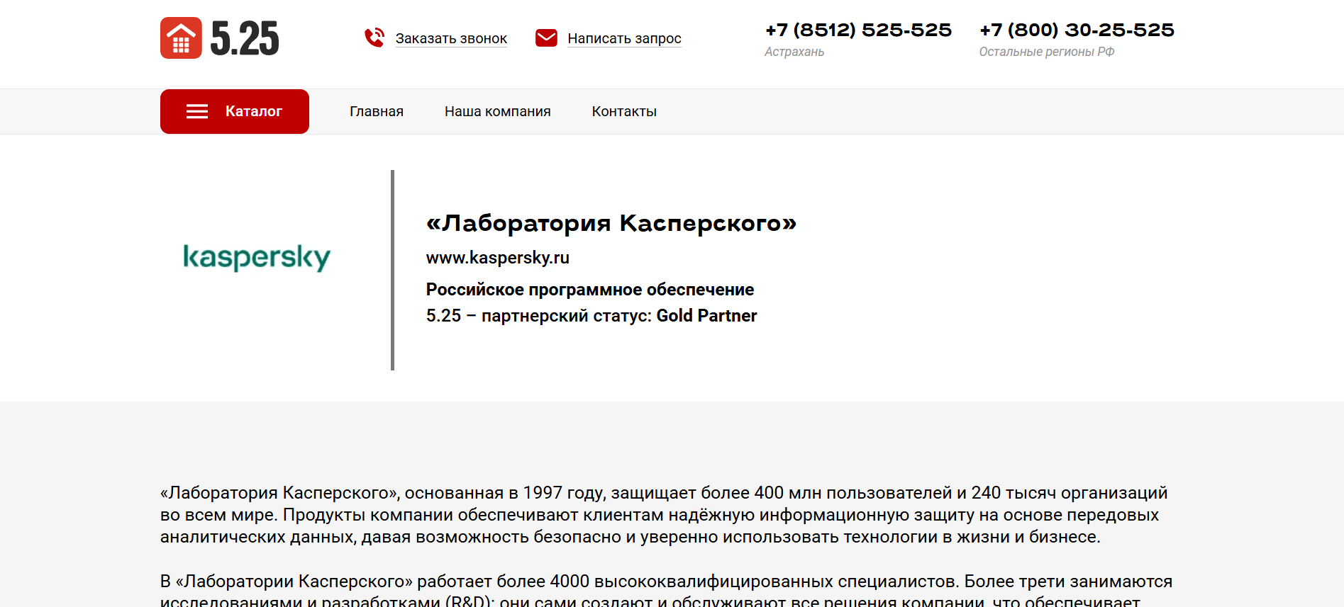 «Лаборатория Касперского» предлагает корпоративным клиентам продукты для защиты конфиденциальных данных, финансов и других ценностей, которые действительно важны для заказчиков. С передовой защитой от «Лаборатории Касперского» можно уверенно вести бизнес, не тревожась о киберугрозах.
