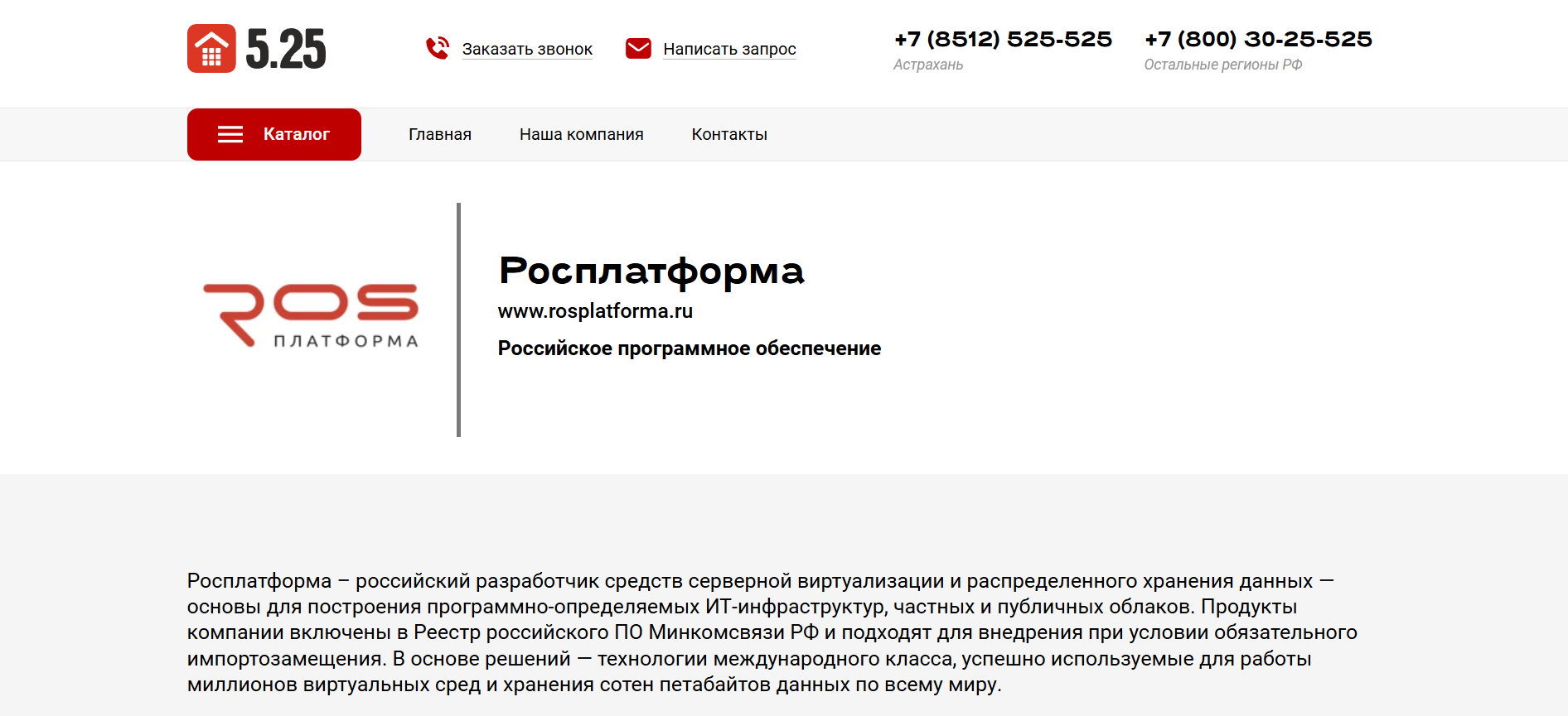 Росплатформа – российский разработчик средств серверной виртуализации и распределенного хранения данных — основы для построения программно-определяемых ИТ-инфраструктур, частных и публичных облаков. Продукты компании включены в Реестр российского ПО Минкомсвязи РФ и подходят для внедрения при условии обязательного импортозамещения. В основе решений — технологии международного класса, успешно используемые для работы миллионов виртуальных сред и хранения сотен петабайтов данных по всему миру.